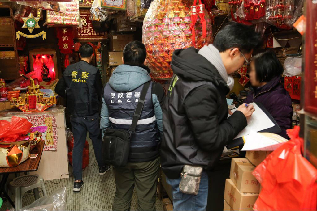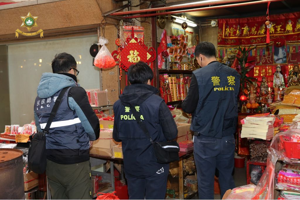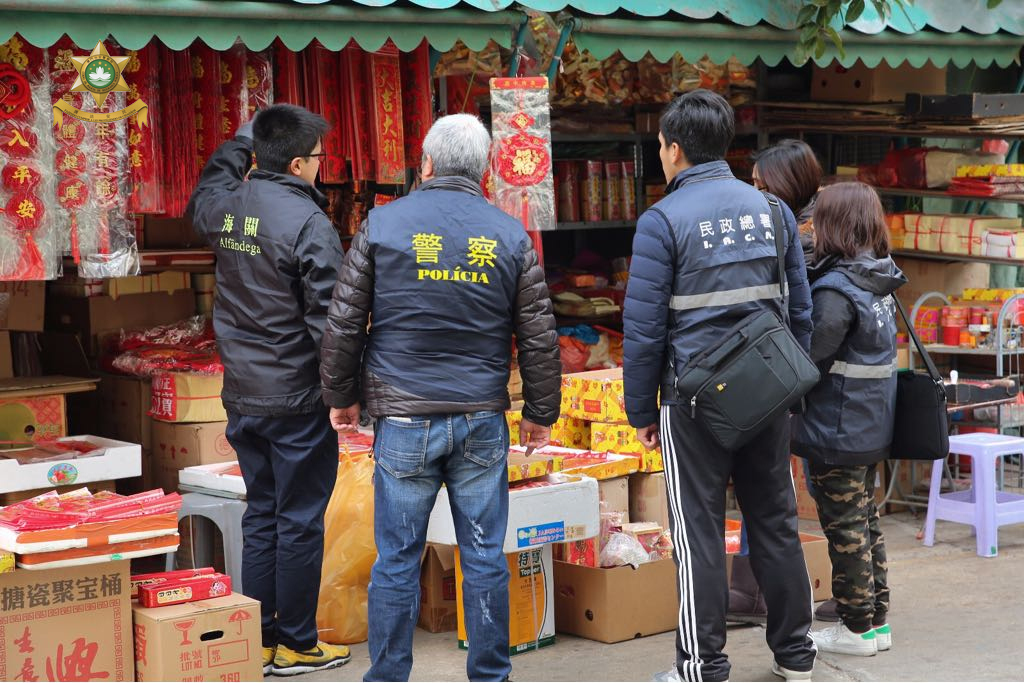 于2018年2月5日,治安警察局联同海关及民政总署进行打击非法入口、贮存及贩卖爆竹的联合稽查行动,巡查本澳各地点售卖爆竹之店铺。是次行动共派出35人,巡查了34间店铺,截查45人(其中39人持有澳门居民身份证、6人持有外地雇员身份认别证),期间没有发现非法入口、贮存或贩卖爆竹的店铺,当中发现5间店铺占用公共地方摆卖货品,民政总署人员对相关店铺作出票控。此外,本局情报厅人员于行动中发现1名涉嫌非法工作的内地女子以及雇用其的店铺负责人,并将2人带返本局调查。