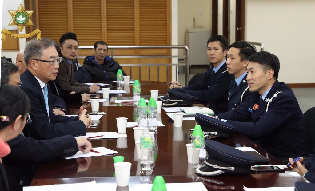 治安警察局持续开展冬防宣传活动,于2月6日下午行动厅黄伟鸿厅长、公共关系处李德辉警司、澳门警务厅张志辉副警司及交通厅甘嘉杰副警司,与警察总局人员一同拜访澳门物业管理业商会进行交流座谈及巡区宣传。