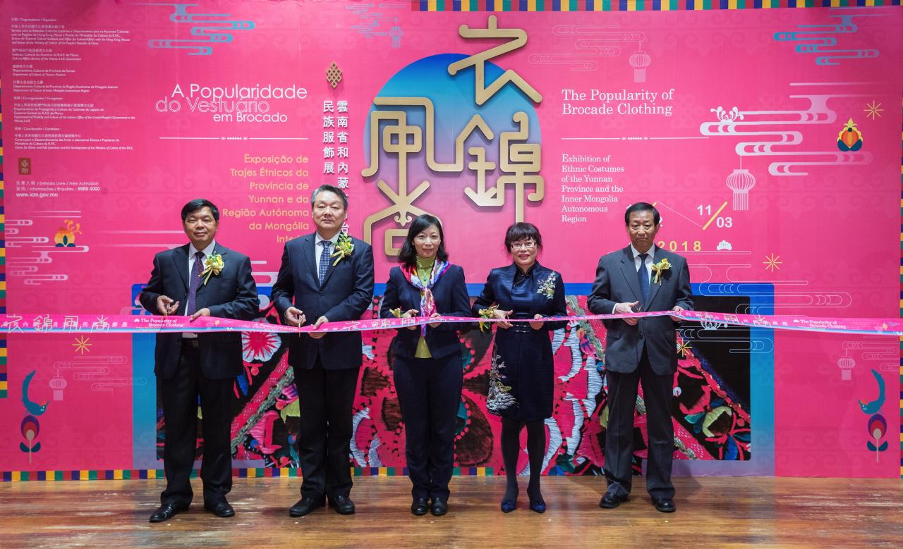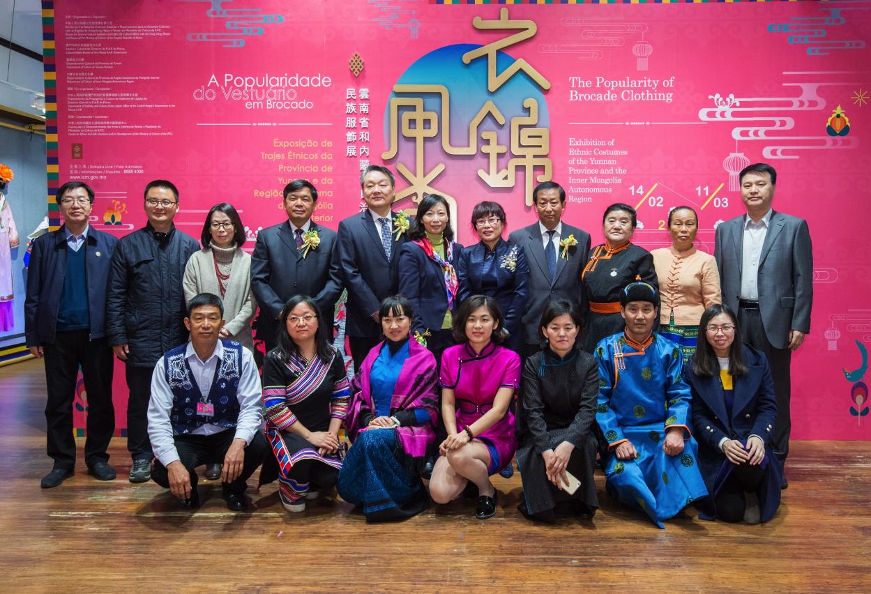 由中华人民共和国文化部港澳台办公室、澳门特别行政区政府文化局、云南省文化厅及内蒙古自治区文化厅主办,中央人民政府驻澳门特别行政区联络办公室宣传文化部协办,中华人民共和国文化部民族民间文艺发展中心承办的《衣锦风尚──云南省和内蒙古自治区民族服饰展》于二月十三日(星期二)下午六时三十分在卢廉若公园春草堂举行开幕式,澳门特别行政区政府文化局局长穆欣欣、中央人民政府驻澳门特别行政区联络办公室宣传文化部副部长级助理邵彬、国家文化部民族民间文艺发展中心副主任王静、云南省文化厅副厅长杨德聪及内蒙古自治区文化厅非物质文化遗产处处长赵增春出席主礼。