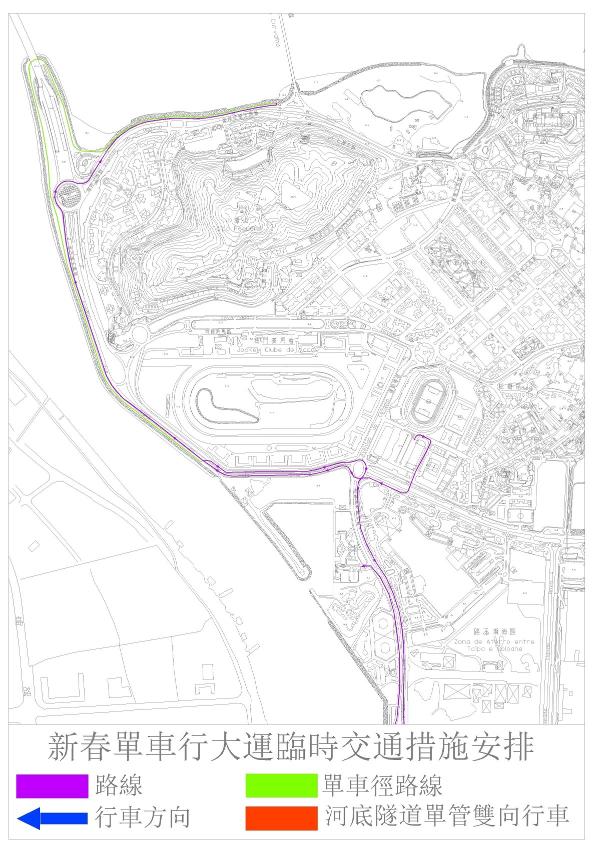 配合体育局举办“新春自行车行大运”活动,2月18日(年初三)上午8时30分至12时期间,路氹多处道路实施临时交通管制(详见附表),交通事务局呼吁公众留意。