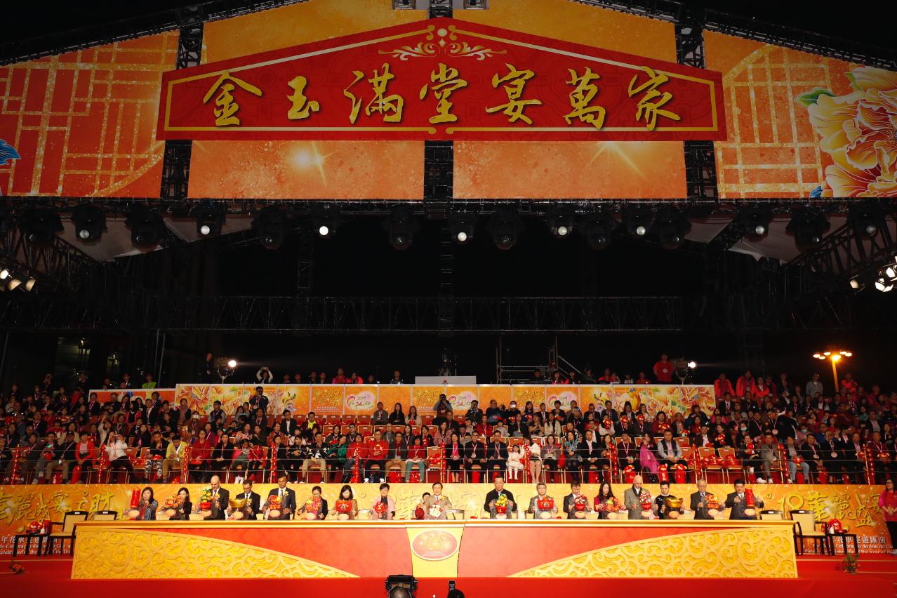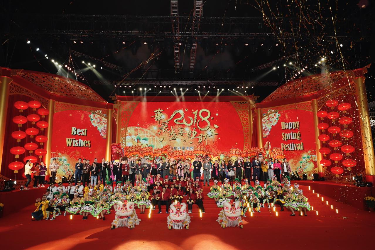 澳门特别行政区政府社会文化司司长谭俊荣、旅游局局长文绮华、民政总署管理委员会主席戴祖义、文化局局长穆欣欣、体育局局长潘永权及中华人民共和国国家旅游局驻港澳机构亚洲旅游交流中心副主任崔素香等一众嘉宾,于晚上8时在旅游塔前的西湾湖广场主持“华丽盛宴旺财年狗年花车巡游汇演”启动仪式,为活动拉开序幕。
