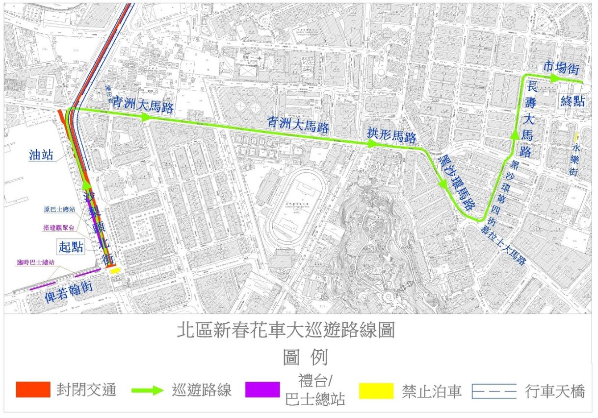 为配合2月24日(年初九)于北区举行的第二场“华丽盛宴旺财年”花车巡游汇演,北区多处道路于活动举行前后将实施临时交通安排,交通事务局呼吁公众留意。
