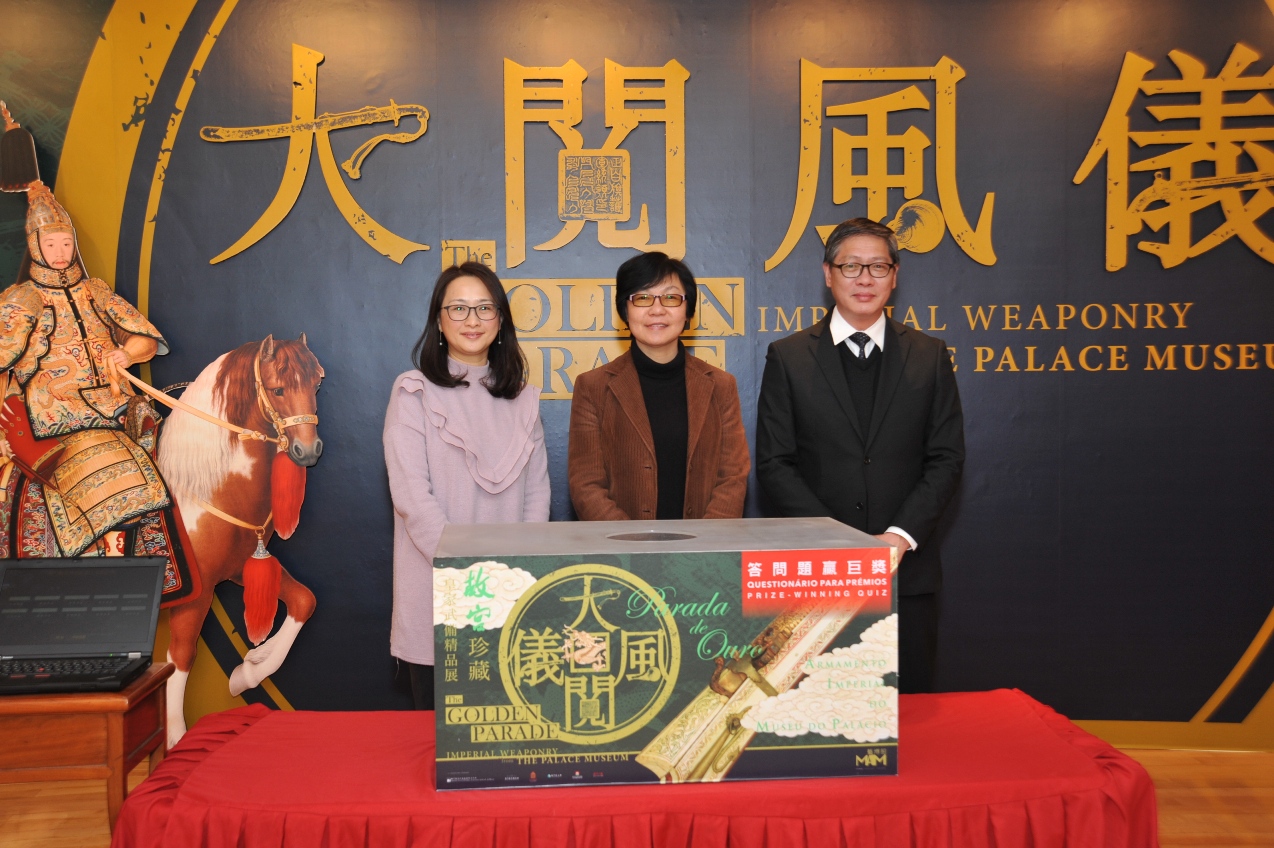 文化局澳门艺术博物馆与澳门日报合办的“大阅风仪──答问题赢巨奖”及“网上送礼”于今日(二月二十八日)进行抽奖,逾一百三十名幸运儿得奖。主办机构将透过手机短信通知得奖者领奖安排,于展览结束当日(三月十一日)下午五时在艺博馆举行颁奖礼,同日举办系列活动,包括“八旗娃娃放肆萌”工作坊、故宫博物院专家以“清帝狩猎文物探析”为题的讲座;专题导赏、“乐聚艺博馆”小型民乐演奏会,以及“参观送礼”活动,欢迎市民踊跃参与。