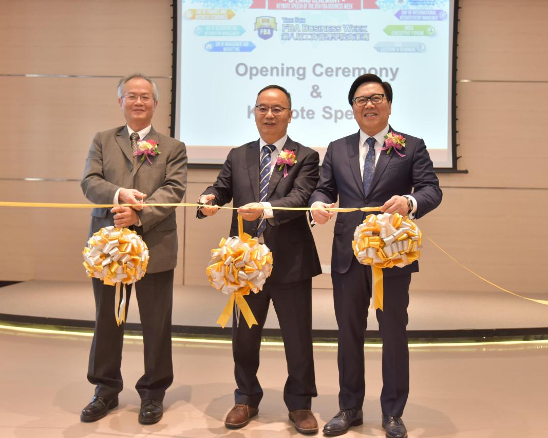 澳大校长宋永华、工商管理学院院长苏育洲以及金沙中国总裁兼执行董事王英伟为商业周开幕进行剪彩。宋永华致辞时表示,工商管理学院商业周乃商学院年度盛事,期望透过邀请各商业领域的管理层、具相当丰富经验的社会人士、专家学者以及商学院杰出校友等到校园向学生演讲,扩阔学生对社会的认识,培育未来商业领袖。