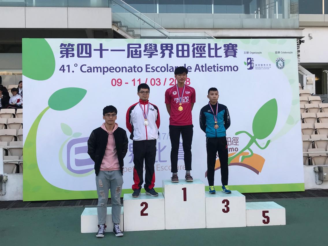 男子组方面,科技学院、吕志和书院学生林泽声夺男子200米冠军,科技学院、绍邦书院学生许嘉聪夺得男子800米冠军,教育学院学生王坤夺得男子1500米冠军,人文学院、张昆仑书院黄泽凯夺得男子铁饼及标枪冠军。女子组方面,教育学院学生岳超夺得1500米冠军,工商管理学院、马万祺罗柏心书院孙缘青则夺得女子跳远冠军。