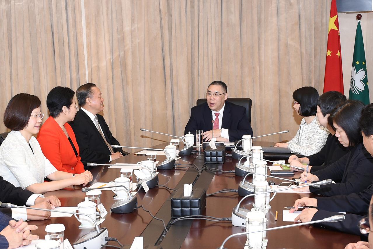 行政长官崔世安今(23)日在政府总部会见惠州市市委书记、市人大常委会主任陈奕威一行,双方就加强两地合作及融入大湾区发展等议题交换意见。