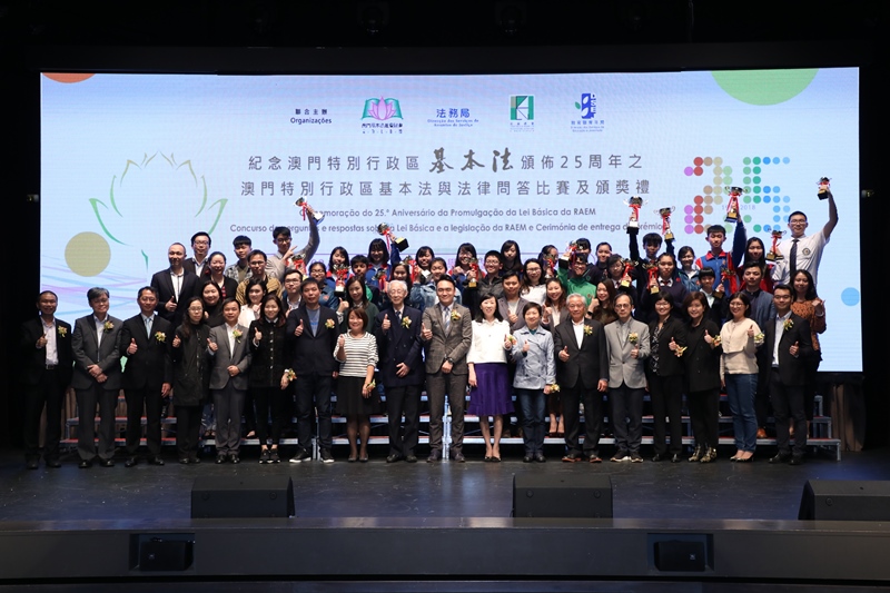 由澳门基本法推广协会、法务局、民政总署及教育暨青年局联合举办的纪念《澳门特别行政区基本法》颁布25周年之澳门特别行政区基本法与法律问答比赛及颁奖礼于3月25日(星期日)假圣保禄学校礼堂顺利举行。主办单位期望透过比赛,加强澳门青年对《中华人民共和国宪法》、《澳门特别行政区基本法》、社会制度、政府架构及特区法制的认识。