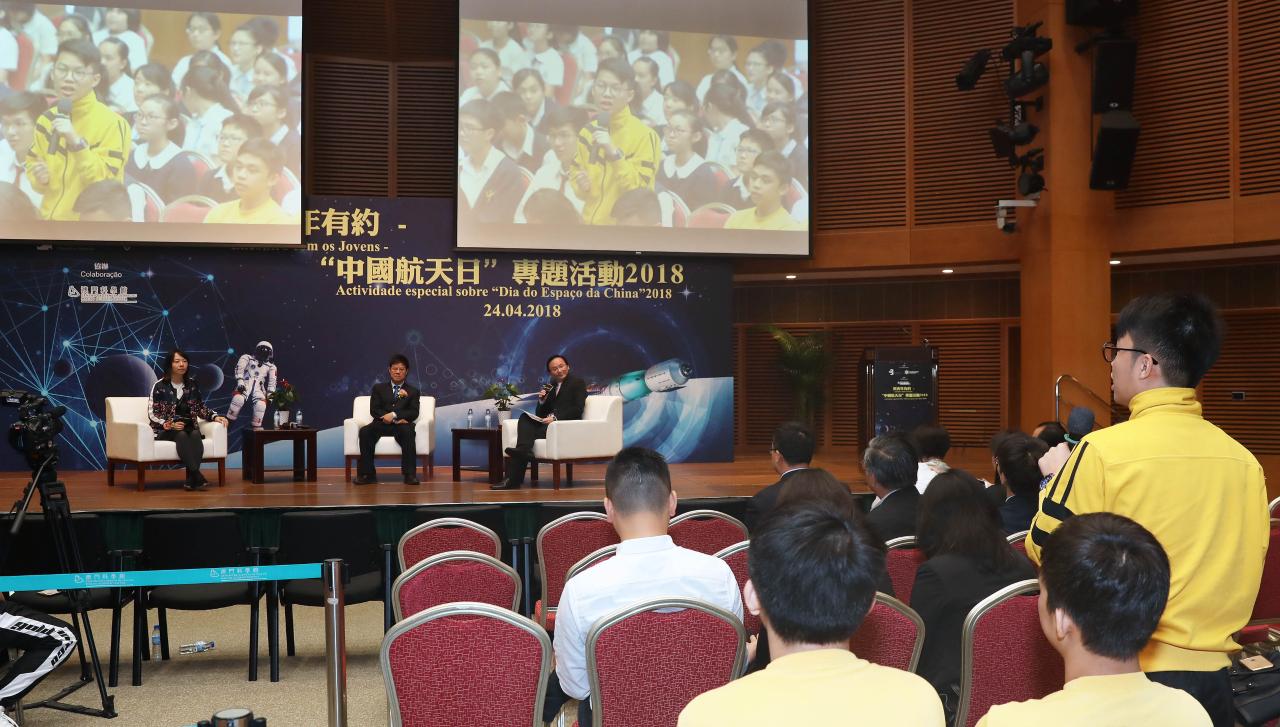 中华人民共和国国务院于2016年设立每年4月24日为“中国航天日”。为让澳门青年学生更瞭解国家航天事业和科普工作的开展情况,激发青年学生的科学探索精神,促进个人全面发展,教育暨青年局及科学技术发展基金合办,并由澳门科学馆股份有限公司协办的与青年有约──“中国航天日”专题活动2018的开幕仪式及座谈会于4月24日上午10时至12时假澳门科学馆会议中心顺利进行。