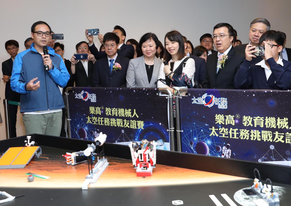 教青局代局长梁慧琪、科学技术发展基金行政委员会主席马志毅、中央人民政府驻澳门特别行政区联络办公室教育与青年工作部部长徐婷、科技委员会林金城副主席、科学技术发展基金行政委员会委员郑冠伟及陈允熙、教青局副局长龚志明、科技委员会科学技术普及专责委员会协调员何少金、澳门科学馆股份有限公司劳美好财务总监、科技委员会科学技术普及专责委员会委员、非高等教育委员会委员、青年事务委员会委员、教学人员专业委员会委员、学校负责人及近400名中学生参加了活动。