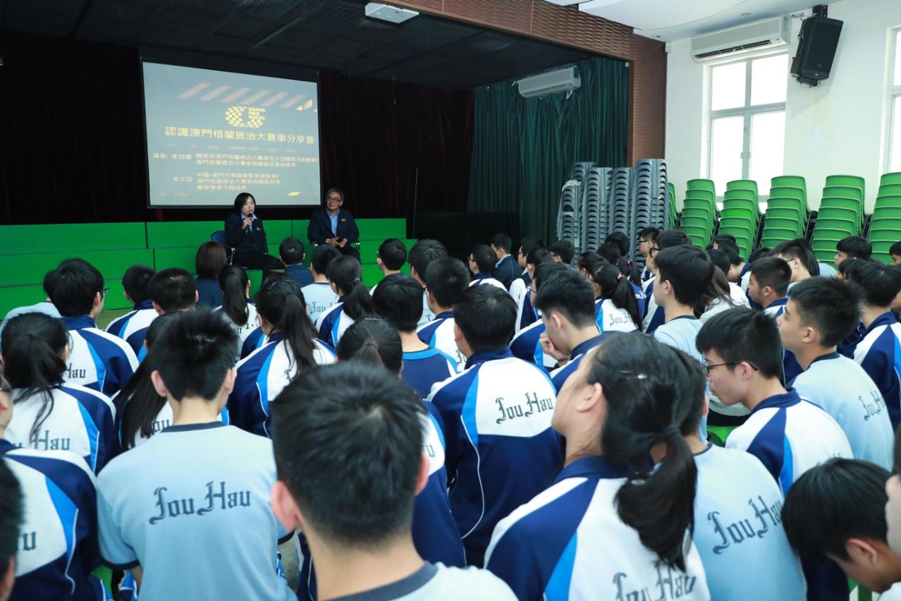为了让本澳不同阶层的市民都能融入大赛车的热烈气氛中,澳门格兰披治大赛车组织委员会日前先后于澳门理工学院、旅游学院、澳门劳工子弟学校和澳门圣若瑟教区中学第五校举行“认识澳门格兰披治大赛车分享会”。主讲嘉宾与学生们作互动交流,分享有关筹办大赛车工作的经验和乐趣。