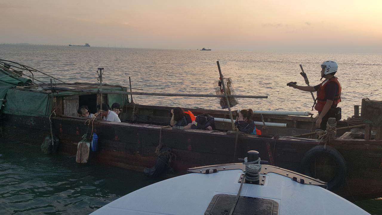 本月14日清晨约5时,海关接获市民举报,于九澳油库码头怀疑有可疑船只进行非法出入境活动,随即派出巡逻关员及快艇到上述沿岸及海面进行堵截。其后,海关快艇在九澳油库对开海面截获一艘机动木艇,艇上有5男2女,及后巡逻关员亦在附近岸边截获2名男性非法入境者。