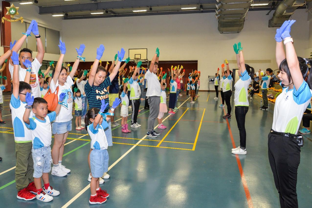 在“迎新聚旧竞技会”当天,治安警察局为新旧小警苗准备了多项有益身心的团队竞技游戏以及精彩丰富的体验活动,包括小警车驾驶、警犬教学、装备展览及试穿等,现场气氛热烈。此外,踏入台风季节,活动亦加入了“防灾知识合多啲”的教学环节,从提早准备好用水、粮食、应急药物、生活用品,到灾害发生时应如何遵照民防架构发出的指示和呼吁,尽早远离低洼地区,及时疏散到安全的地方暂避,保障一家大小的安全程序,都一一透过互动和展示的方式,向各位小警苗和同事们进行介绍,整个教学寓学习于游戏,务求令防灾的意识从小渗透到参与者的脑海里,达到防灾从小警苗开始做起。
