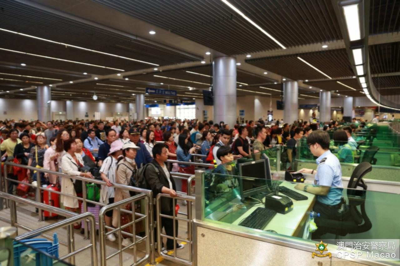 治安警察局领导指示各边境站主管密切关注出入境人流状况,并与对口部门保持紧密沟通,同时实施多项措施,加开检查柜台疏导人流,增派保安人员协助维持出入境大堂及车道的秩序,以有效分流旅客;关闸广场离境大堂入口处亦增派人员执行疏导措施,引导旅客安全有序进入。另外,于关闸及各口岸外围一如既往作好部署,派驻警员指挥交通以及监察人潮情况,以确保通关秩序,保障市民及游客的安全。