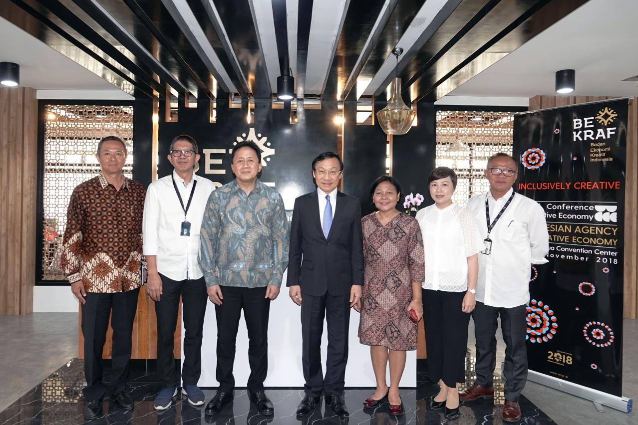 在雅加达观摩亚洲运动会期间,社会文化司司长谭俊荣分别与印尼旅游部部长阿里耶夫·叶海亚、创意经济部部长德里亚万·穆纳夫、万隆旅游学院院长费萨尔会晤,就两地文化、旅游的交流合作,文化创意产业的发展,旅游人才的培养等交换意见。