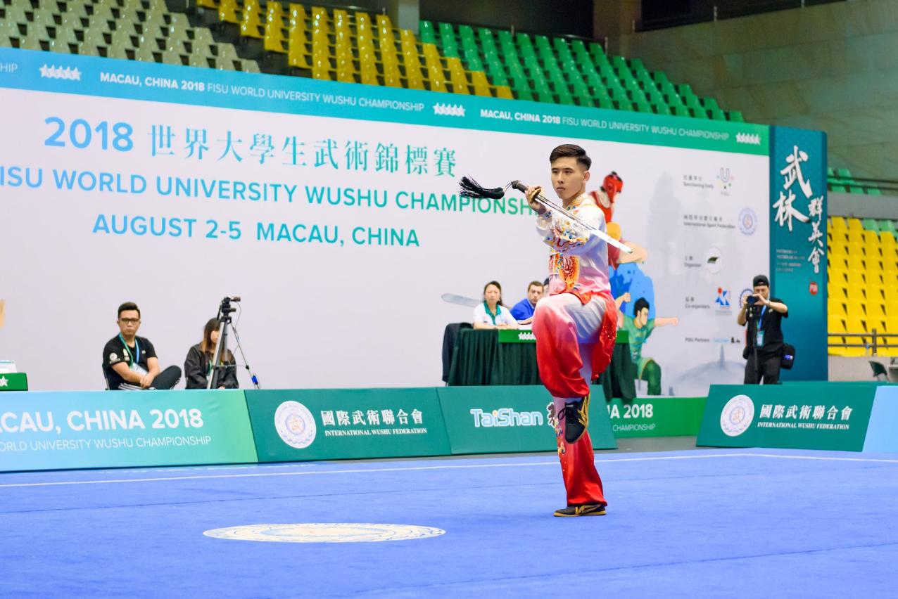 澳门理工学院体育教育学士学位课程赵伟强同学在男子南拳项目表现出色,夺得金牌,继世青赛和世锦赛后,再次摘得世界级赛事桂冠,以及于男子南棍项目与十二名选手对决,仅以0.02分之差不敌日本选手获银牌。体育教育学士学位课程庄嘉成同学则于男子太极剑赛事勇夺银牌,同为修读体育教育的简继华同学则于散打男子六十公斤级别晋级后,最终获该项目铜牌。
