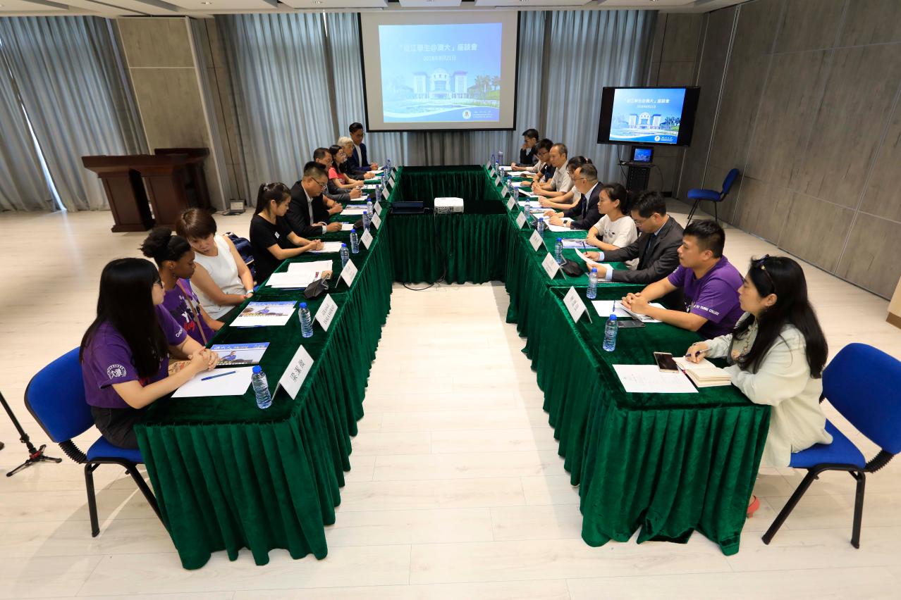 参加座谈会还有中联办教育与青年工作部处长洪波、教育暨青年局社会暨教育辅助处处长薛荣滔,澳大学生事务长彭执中、校长办公室主任汪淇、传讯总监张惠琴、学生辅导处处长苏桂龙等。