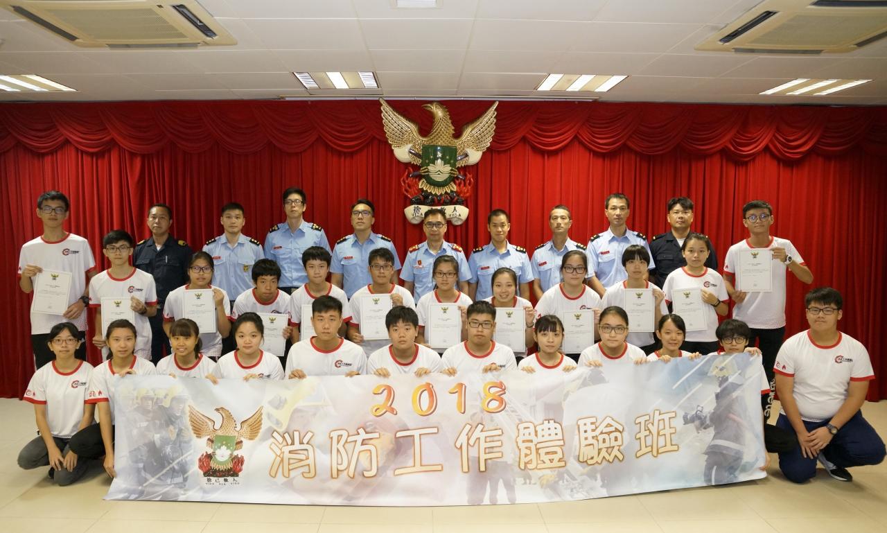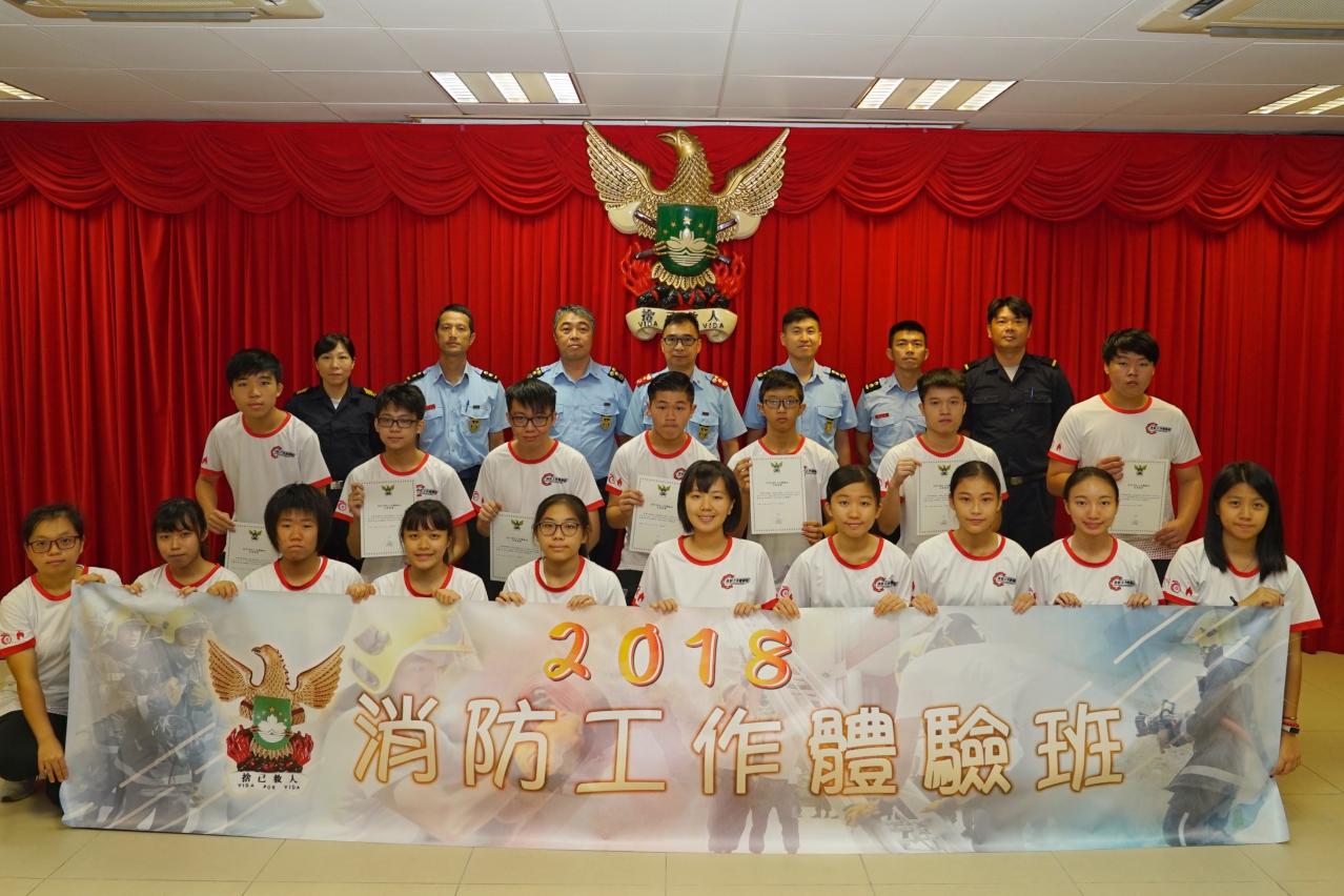消防局配合特区政府的青年培育政策,使青少年珍惜年华,善用暑假,以及加强青少年的公民意识及服务社会的精神;为此,本局与教育暨青年局分别于本年8月6日至8日,8月13日至15日,以及8月20日至22日开办三班“2018消防工作体验班”,合共有59名青少年参与。