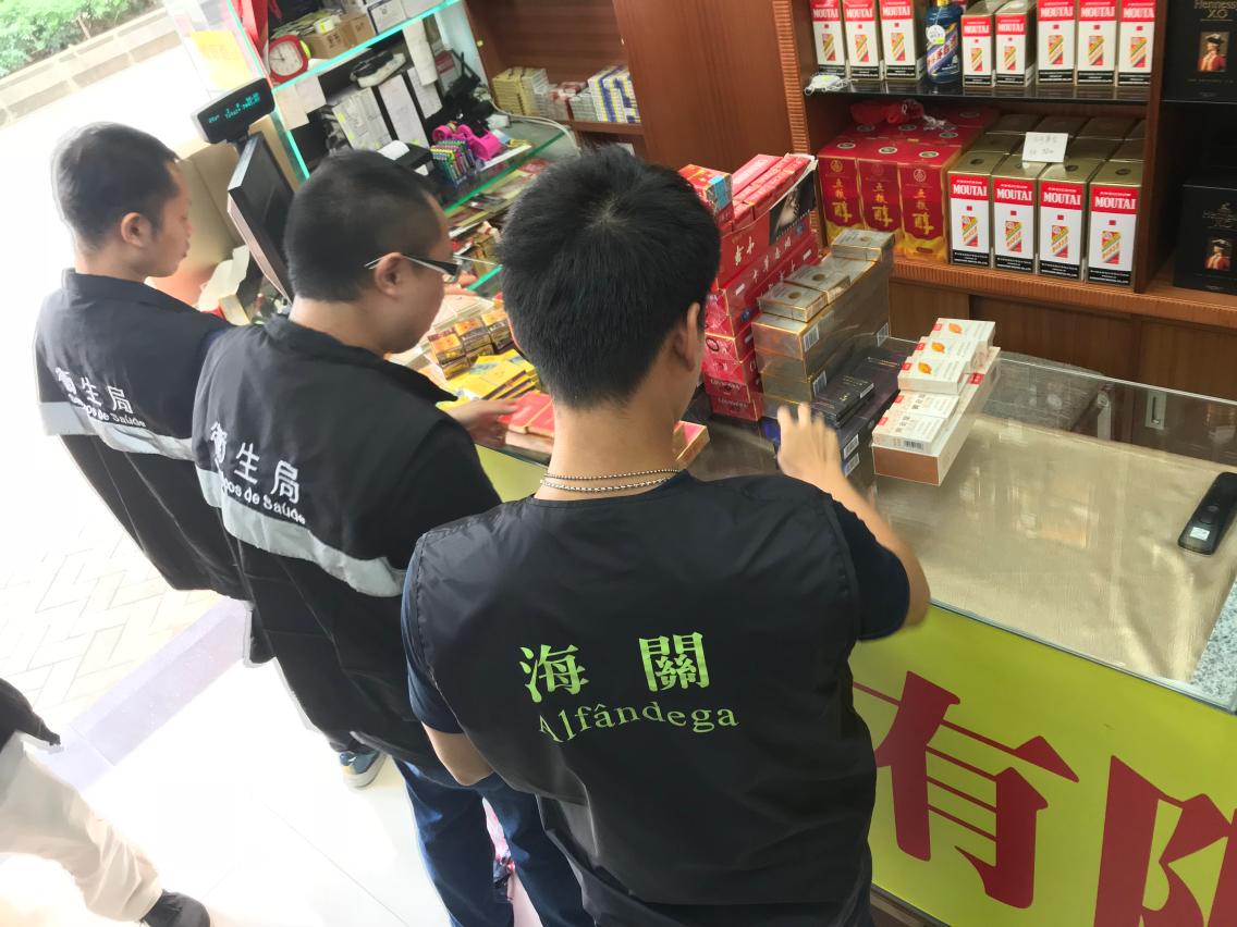 于本月23日及24日,海关联同卫生局控烟办人员巡查市面售卖香烟的场所,打击贩卖私烟活动。是次行动突击巡查了下环区、黑沙环区、新口岸区及皇朝区的8间店铺,在1间超级市场及3间连锁经营的烟行内,分别查获660包(共13200支)及1297包(共25940支)没有警告标语及怀疑未完税香烟,全部为知名品牌,涉及税款共约澳门币五万九千元。