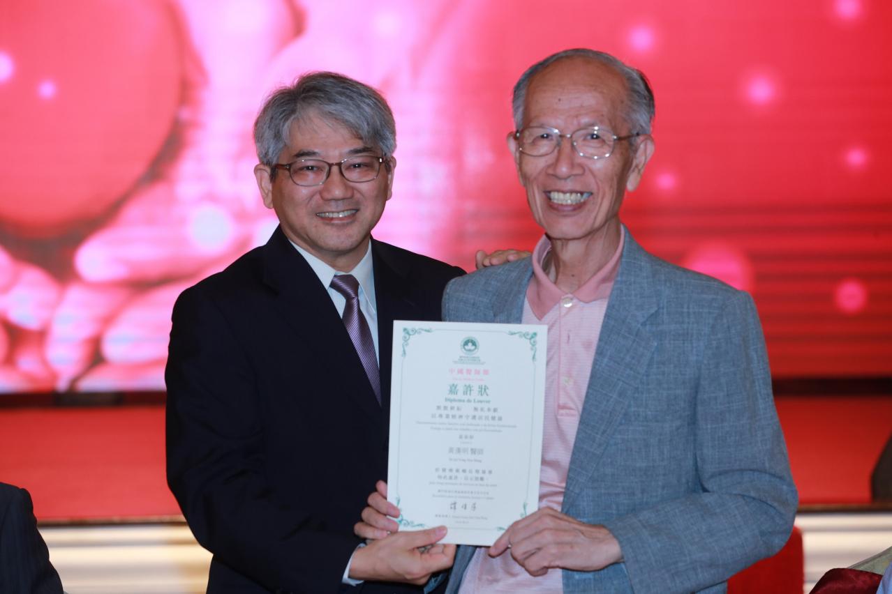 最后,他勉励出席典礼的医生继续迎难而上,弘扬救死扶伤的人道主义,实践大爱无疆的专业精神,共建良好医患关系,为增进居民健康福祉作贡献,携手开创澳门医疗事业新局面;特区政府也将继往开来,积极提升全澳医疗水平,继续维持公、私营、非牟利机构医疗服务平衡发展和合作。他期望,《医疗人员专业资格及执业注册法律制度》及早在立法会通过、还有医学专科学院及早成立,才可为年青医生提供良好培训和就业机会。
