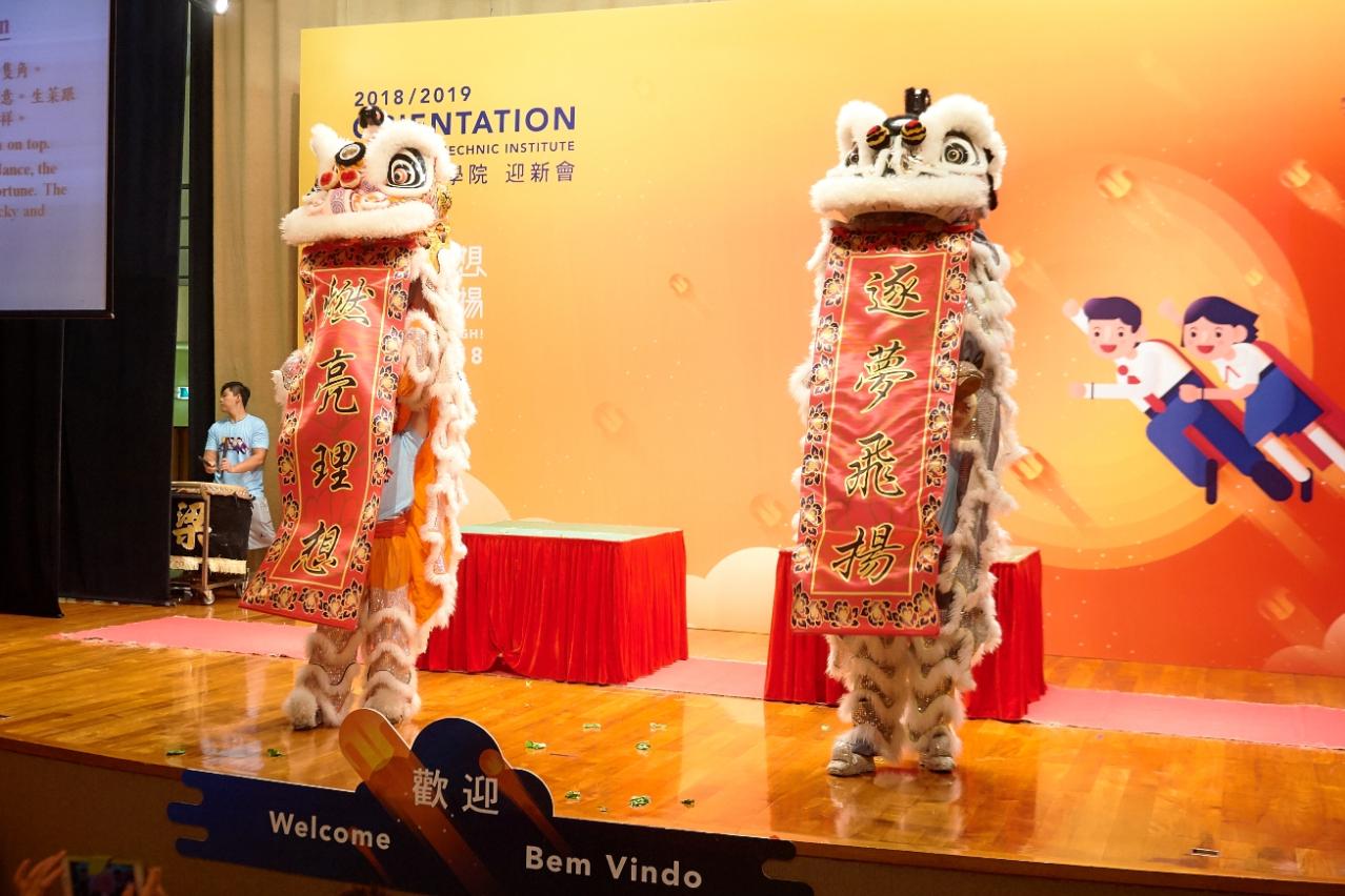 八百多名来自澳门本地、中国内地、香港,以及美国、葡萄牙、巴西、佛得角、圣多美的新生及交流生参加了迎新会。理工学生会理事长汪宗隽致辞欢迎新同学加入理工大家庭,鼓励同学们珍惜学习和实践的机会,积极参加课外活动,开阔视野,互相扶持,共同成长,追寻精彩人生。理工学生及校友以舞狮表演拉开迎新会序幕,祝愿同学们学业进步、精彩生猛。数百名新生穿上理工设计专业学长设计的“燃亮理想‧逐梦飞扬”迎新T恤,在学生会成员的引领下,齐心协力演示了理工英文简称“MPI”字母和口号。