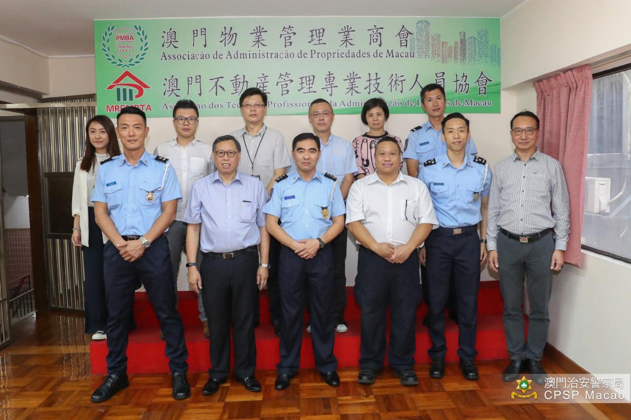 为进一步加强物业管理业界的防灾避险意识,治安警察局行动厅李镜贤代厅长今(13)日下午率领辖下多名人员,与澳门物业管理业商会的崔铭文理事长、澳门不动产管理专业技术人员协会崔绍文及杨光副会长等代表会晤,呼吁物业管理方应做好各项防灾应急措施,并提醒市民须时刻留意风暴消息,做好相关准备。