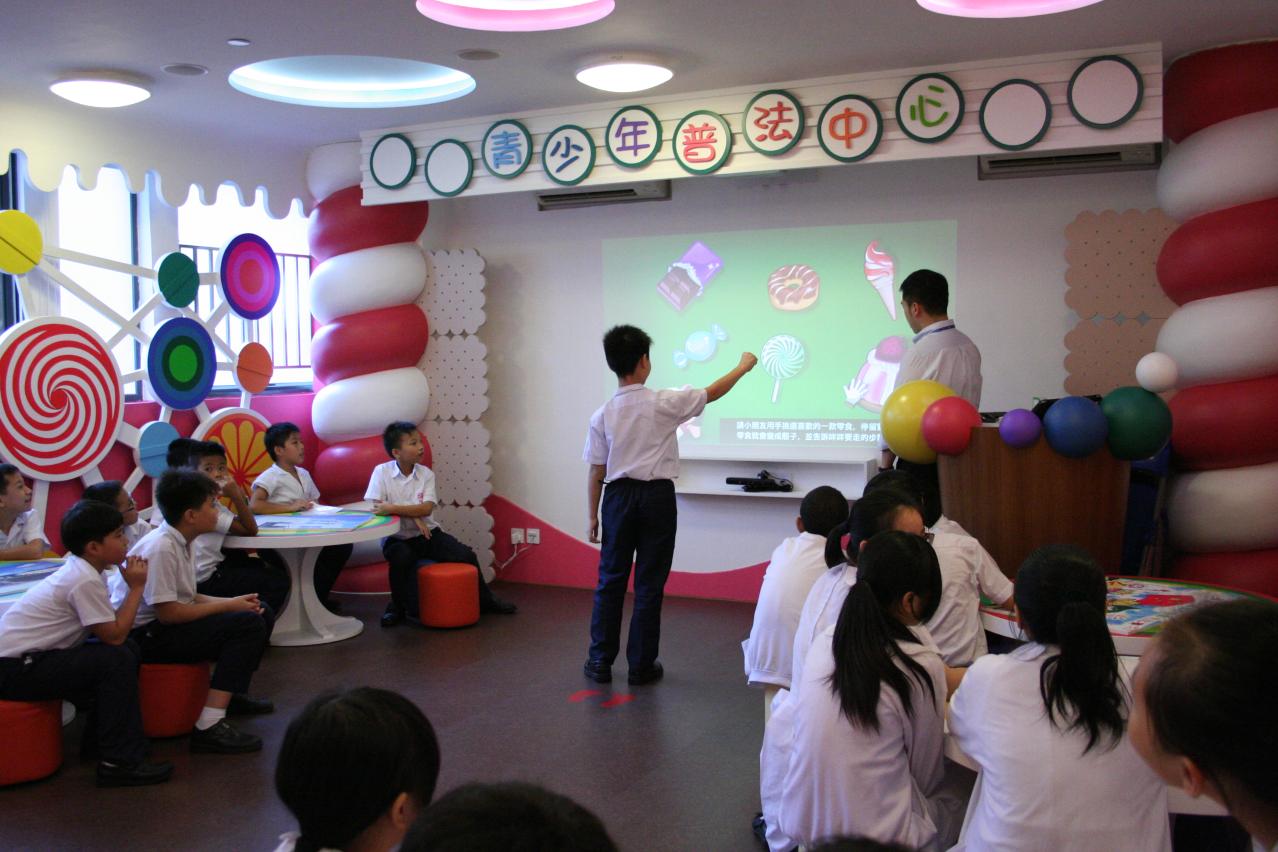 法务局亦设有青少年普法中心可让学校预约进行参观体验活动,活动同样按年级分为不同主题,到访的小学生会在工作人员的带领下,穿越糖果教室、森林乐园、迷宫、时光隧道、基本法游戏室及多媒体室等多个主题空间。透过互动电脑游戏、迷宫解难、立体拼图及专题讲解等多元化活动,对主题法律信息留下深刻印象。