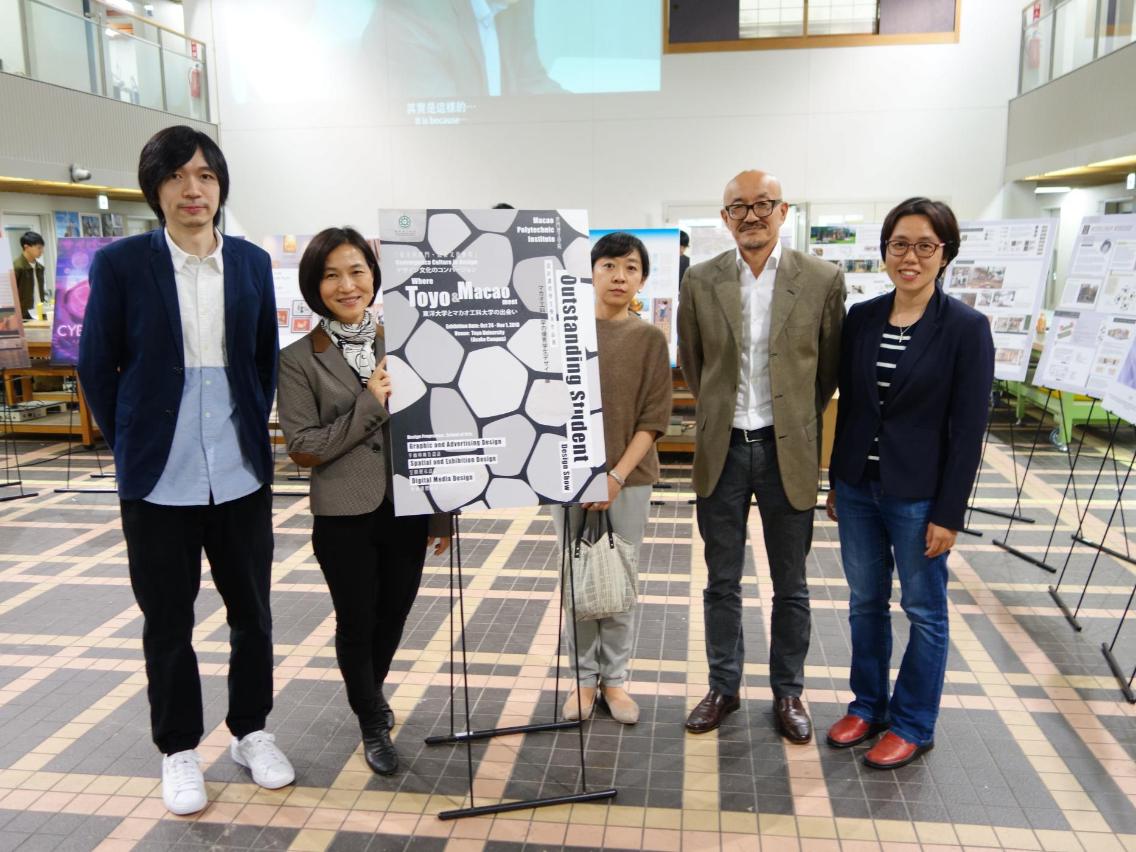 促进国际学术交流,将学生优秀设计作品推广到海外,让更多人认识澳门本地创作,日前澳门理工学院艺术高等学校校长徐秀菊率领设计课程助理主任黎美琪及讲师杨琦晖前往日本,把设计课程最新的教学成果带到东洋大学,与该校合办“东洋与澳门・设计文化汇聚-澳门理工学院设计课程学生优秀作品展” 。徐秀菊一行与东洋大学人间环境设计学科学科长水村容子、副教授柏树良共同主持展览开幕式,该展览展出日期由十月二十五日至十一月一日圆满结束。