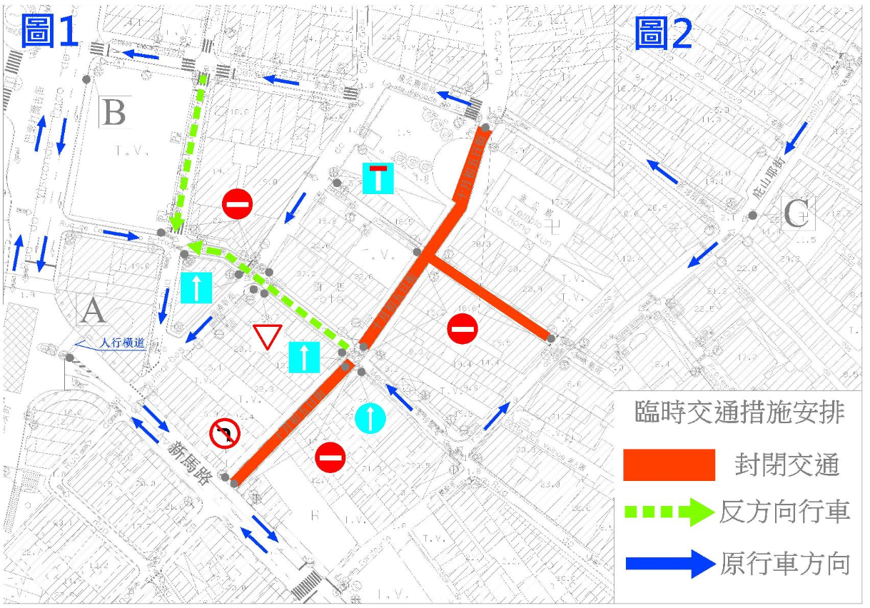 交通事务局呼吁公众留意有关交通改动,驾驶者应遵守路上设置的临时交通标志行车,小心驾驶。