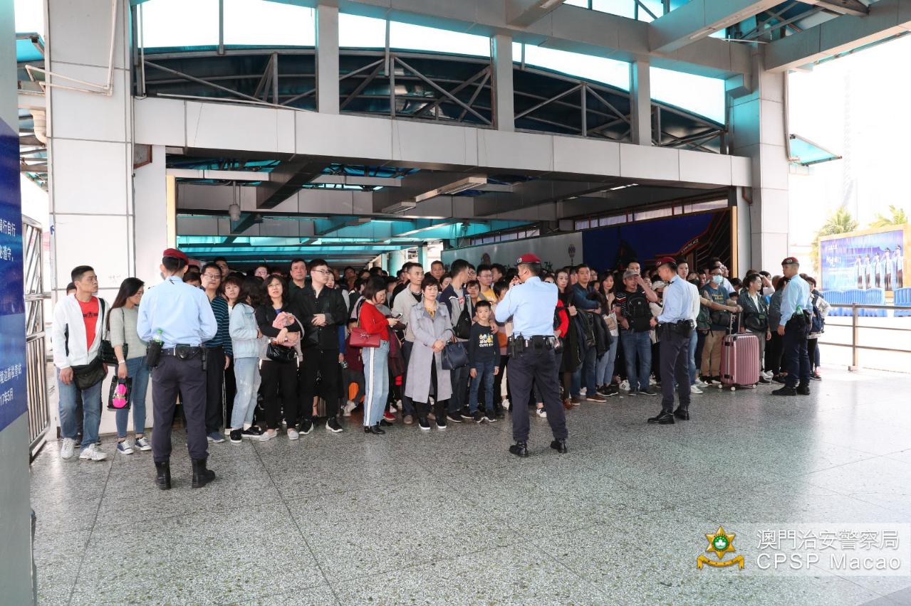 总结过去三日的通关情况,各出入境口岸人流较多,秩序良好,通关过程顺利,而且天公造美,港珠澳大桥往来便利,加上市面一系列贺年活动,尤其昨晚上演的「金豕报岁喜回家2019农历新年花车汇演」,将本澳的节日气氛推上顶峰,带动单日出入境总人次首次突破66万,单日入境旅客突破22万,创有记录以来新高。治安警察局预计出入境人潮将会持续至年初六,辖下出入境管制厅已与对口部门做好沟通协调及相应的警务部署,包括取消所有警务人员休假、抽调内勤警务人员支援口岸前线工作、各级领导及主管加强口岸的监察,视乎人流加开通道疏导人潮,并增派警员及保安人员协助维持出入境大堂秩序。
