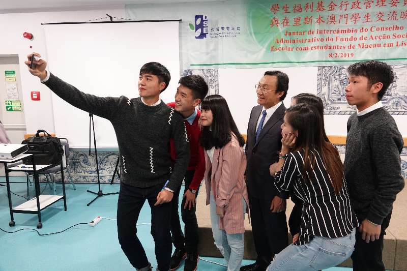 藉着2月8日中葡建交四十周年纪念日之际,社会文化司司长谭俊荣率领学生福利基金行政管理委员会老柏生主席及委员,以及教育暨青年局人员一行,与在里斯本就读高等院校约百名在葡留学的受助学生会面及进行晚宴交流。