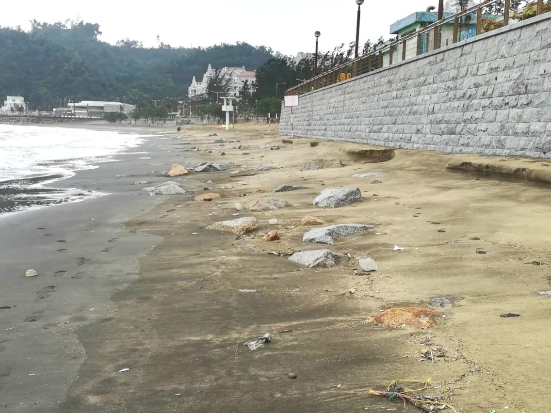 黑沙海滩西南面出现海沙流失情况
