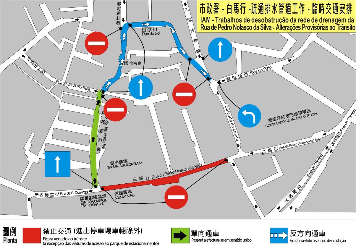配合市政署疏通排水管道工作,白马行及周边路段于2月25日至27日每日上午9时至11时30分实施临时交通措施(详见下表),交通事务局呼吁驾驶者留意。