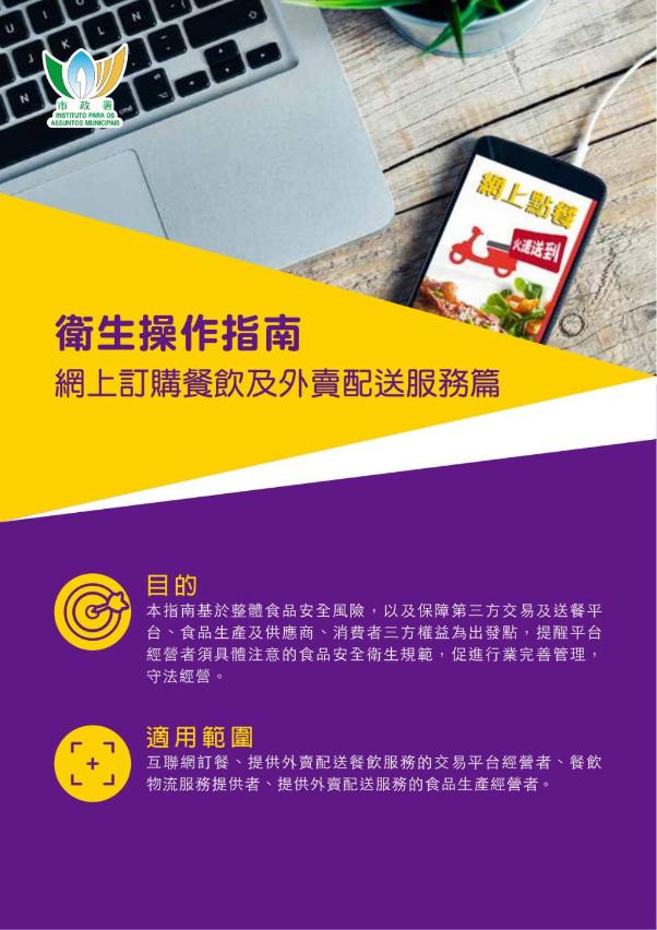 为协助业界履行经营责任及消费保障,食品安全厅编制了「食品卫生操作指南─网上订购餐饮及外卖配送服务篇」,并鼓励业者安排配送员报读恒常开办的「食品安全与环境卫生基础班」,藉此提升雇员之食品安全及卫生意识。
