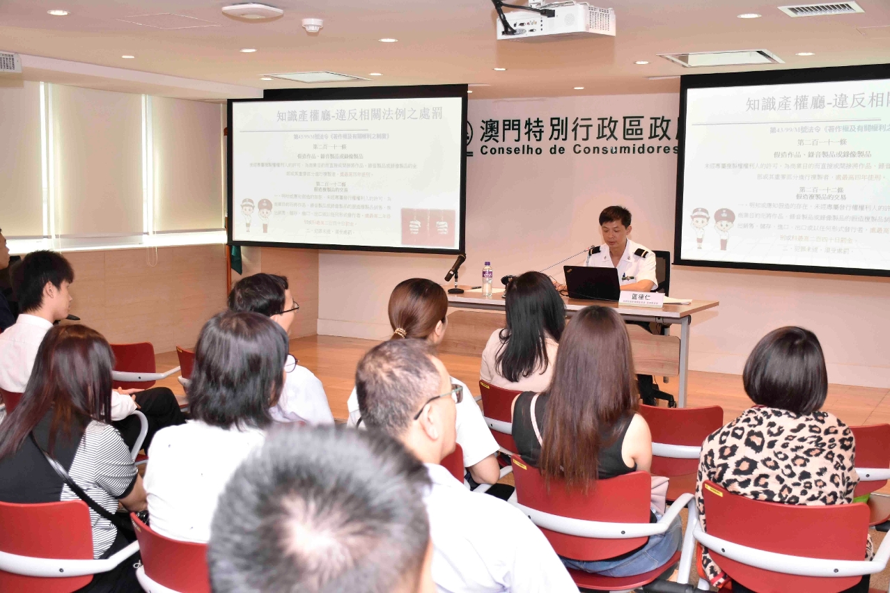 消委会通过培训工作加强“诚信店”知法守法意识,以及提升其专业水平,日前邀请海关及经济局举办讲座向“诚信店”介绍本澳保护知识产权的各项法例,以及瞭解为商标注册的重要性及相关申请手续。