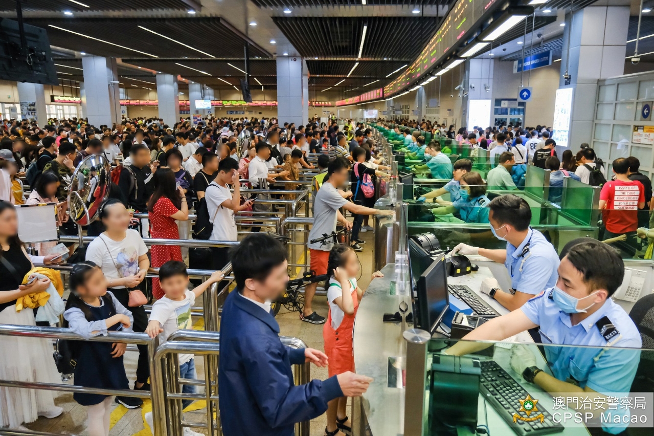 出入境人流高峰集中在假期的首三天(5月1至3日),相关数字如下:共录得189.4万出入境人次,比去年三天假期(4月29至5月1日)上升17.8%;人流量最多的是关闸口岸,录得约138万出入境人次,比去年假期上升14.9%;路氹城出入境事务站,录得约14万出入境人次,有19.3%增幅;机场出入境事务站有6.7万人次出入境,较去年上升21.5%,为增幅最多的口岸;港珠澳大桥出入境事务站有12.7万人次出入境。