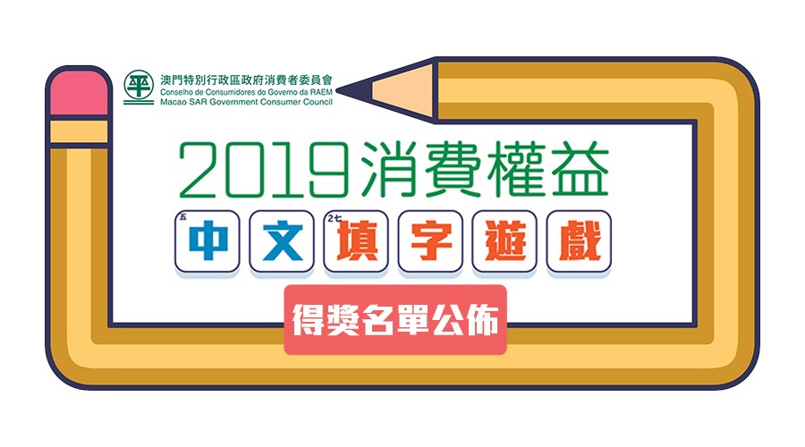 点击以下连结查阅“2019消费权益中文填字游戏”得奖名单及答案https://www.consumer.gov.mo/News/Data/PDF/CH/2019/5/05201929173323_2019CC_cw_result.pdf