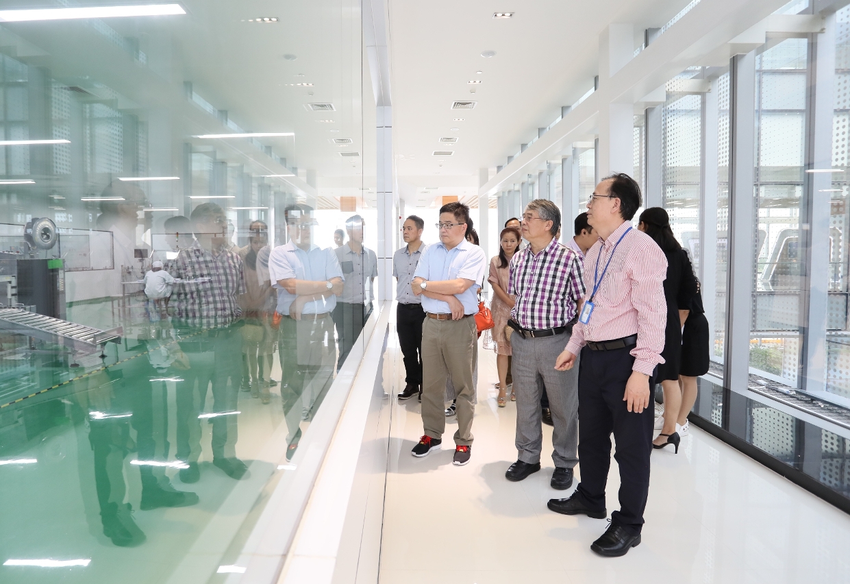 周稀鸣会长一行在副行政总裁冯准等陪同下,参观了园区科研总部大楼传统医药国际交流合作平台,听取园区建设规划、公共服务平台搭建、国际交流合作及大健康产业项目发展等总体情况介绍;察看入园澳门企业的中医药产品,了解产业园国际交流合作的工作和成果,以及产业园针对澳门中医生培养等情况。同时,在GMP中试生产大楼也实地考察了产业园搭建的具有国际先进水平的GMP中试生产平台。
