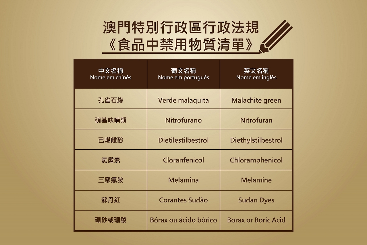 为确保本澳食品安全,市政署食品安全厅一直透过恒常抽检监测及食品场所卫生巡查等,对本澳市售食品进行监控。市政署呼吁业界,须建立自身的食材及食品添加剂管理系统,妥善保留所有食材(包括食品添加剂)单据,以便有需要时供权限部门追踪来源;而选购食品添加剂时,应仔细瞭解产品是否符合安全食用之要求,及注意其标签上应列有该食品添加剂的详细资料,确保所生产及售卖之食品符合本澳《食品安全标准》及《食品安全法》等相关法律,确保食品安全,同时避免触犯法例。