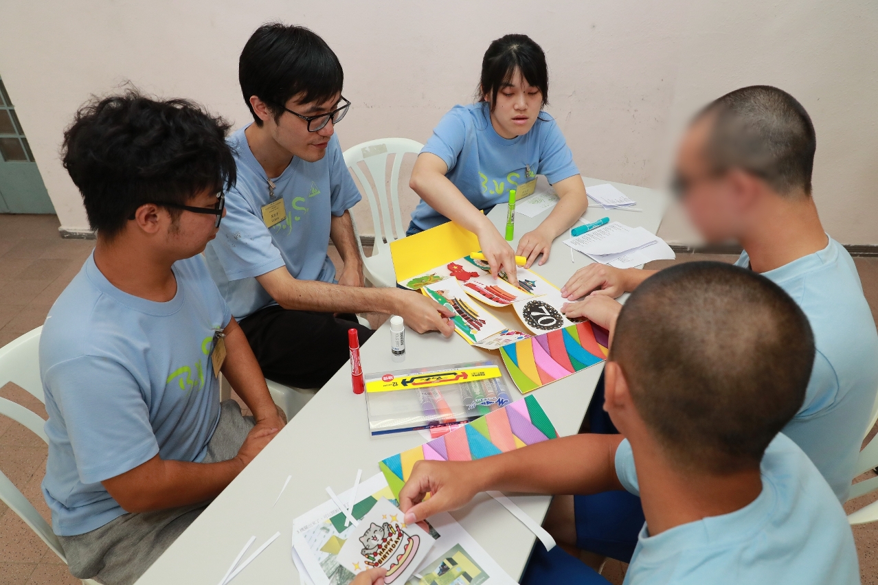 此外,为庆祝中华人民共和国成立70周年,局方安排来访青年与院生DIY制作国庆立体贺卡,大家分工合作,一剪一贴,将对祖国祝福的语句及图案组合起来,制成一张张贺国庆的心意卡,表达出大家迎接国庆的喜悦心情。最后,在分享会上,院生讲述自己在感化院内生活、学习的情况,来访青年亦分享了日常参与社区活动的所见所闻和得着,以及邀请院生日后多参与该机构所举办的活动,希望藉此促进他们可以更快地融入社会。