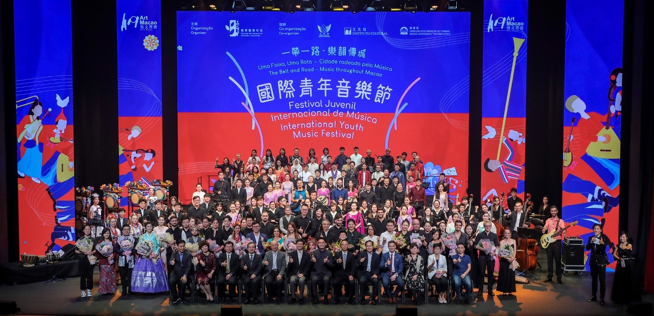 “艺文荟澳”国际青年音乐节2019室内闭幕演出于7月21日在澳门文化中心综合剧院举行。音乐节2019由教青局主办,市政署、文化局及旅游局协办,邀请来自“一带一路”沿线国家和地区及本地超过370名青年音乐演出者欢聚澳门,充份展现澳门中西文化交融共存的特色。教青局代局长龚志明、中央人民政府驻澳门特别行政区联络办公室台湾事务部部长徐莽、 中国人民解放军驻澳门部队办公室主任彭伟上校、亚洲教育北京论坛秘书长姚望、社会保障基金行政委员会主席容光耀、中央人民政府驻澳门特别行政区联络办公室教育与青年工作部副部长苟人民、波兰驻港副领事Dominik Jakuszko、中华人民共和国国家民族事务委员会港澳台办副司长兰海滨、教青局副局长梁慧琪、亚洲教育北京论坛副秘书长刘秀华及黄海峰、香港中乐团艺术总监及首席指挥阎惠昌、澳门莲花卫视台长李自松等嘉宾出席欣赏当晚的演出,并与全体音乐演出者合照留念,气氛动人温馨。