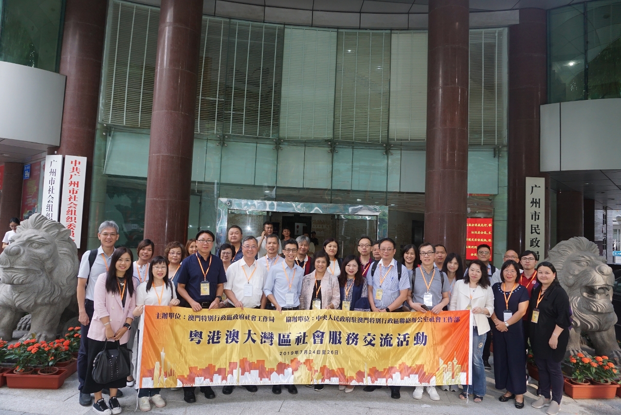 为了促进澳门社会服务界融入大湾区发展,由社会工作局主办、中央人民政府驻澳门特别行政区联络办公室社会工作部协办的粤港澳大湾区社会服务交流活动,本澳业界代表已于本年7月24至26日期间,前往大湾区广州市及佛山市进行考察交流。