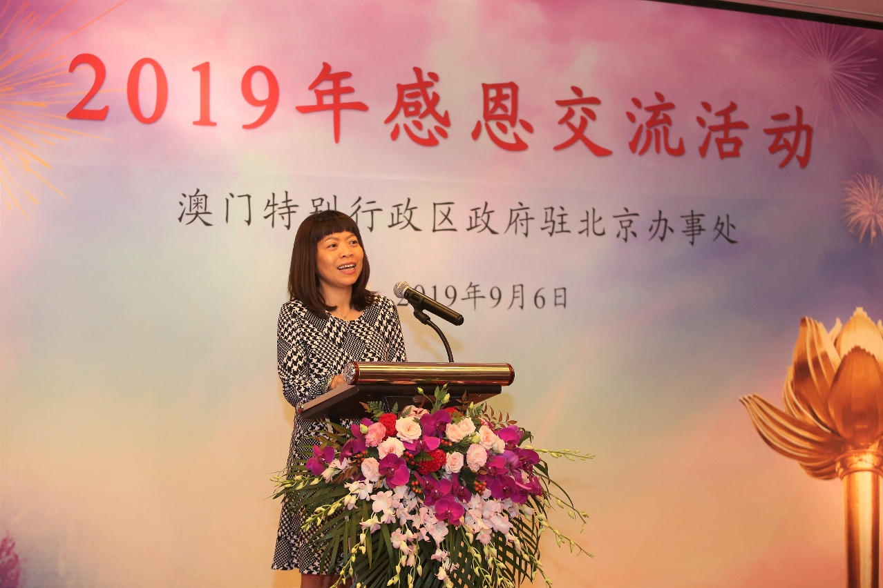 在迎来祖国七十周年庆典以及澳门回归祖国二十周年 “双庆” 的前夕,澳门特别行政区驻北京办事处日前在北京举办2019年感恩交流活动,邀请曾经派驻澳门的中央人民政府驻澳门特别行政区联络办公室、外交部驻澳门特别行政区特派员公署,以及海协会驻澳门办事处约一百位领导出席,共贺“双庆”,并向曾经派驻澳门的中央驻澳机构的各位领导,在过去二十年来为澳门繁荣发展作出的贡献,表达衷心的感谢。气氛热闹,场面感动。