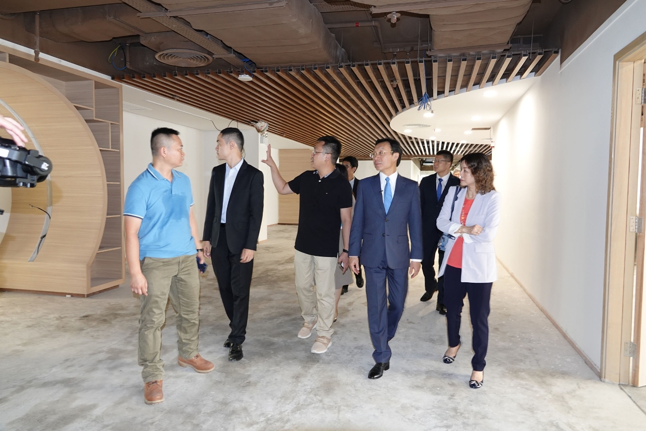 在氹仔律政司街氹仔松树尾社区中心,谭俊荣一行又分别视察了民众颐菁中心及澳门理工学院长者书院(氹仔分校)的工程进度。