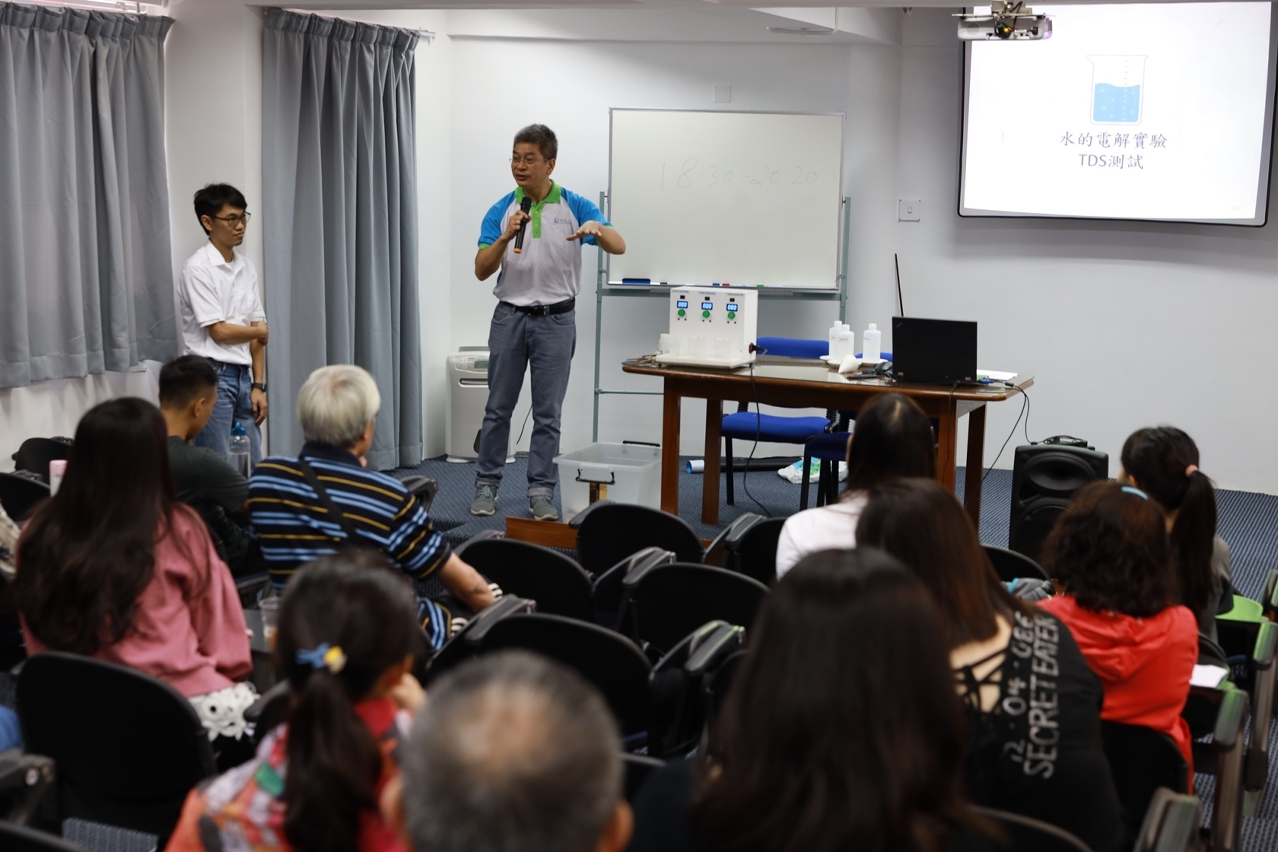 讲座中本局人员围绕水资源资讯、用水安全、推广节水教育三大主题,与出席讲座的各校教师分享了现时世界各地所面临的水资源紧缺状况、澳门饮用水源和处理过程、国家的水资源管理制度、水资源的可持续发展、水足迹的概念、极端天气对供水影响、楼宇供水系统维护以及推广校园节水工作等内容,同时由澳门自来水的化验研究中心人员,透过简单实验向出席教师解释坊间常见关于自来水水质的疑虑。期间,本局人员与出席教师就学校推行节水教育的情况交换意见和经验,交流和讨论推动学生实践惜水节水行为的方法。