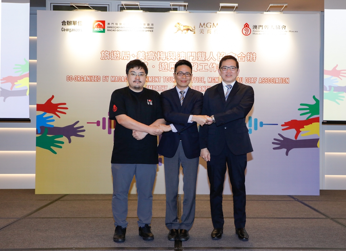 旅游局与美高梅及澳门聋人协会首次合办“同感‧游历无声”工作坊,透过导师讲解、无声体验与模拟场景等互动环节,协助澳门旅游从业员提升对聋人和听障人士的认知,积极配合特区政府实施无障碍环境优化计划。