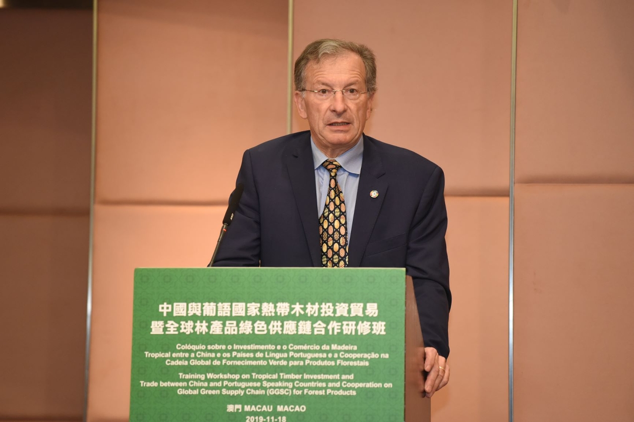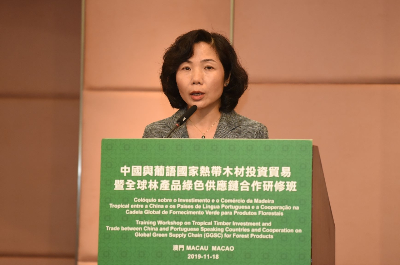 由中葡论坛(澳门)培训中心和国际热带木材组织(ITTO)共同举办、澳门大学承办的“中国与葡语国家热带木材投资贸易暨全球林产品绿色供应链合作研修班”于11月18中午在澳门世界贸易中心莲花厅举行开班仪式。