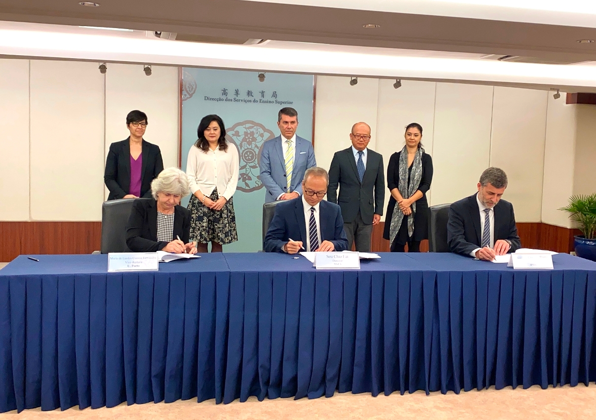 高等教育局、葡国波尔图大学、东方葡萄牙学会于12月3日共同签署《关于澳门学生赴葡国波尔图大学升学的合作协议书》,为本澳居民创设更便捷的升学途径,并藉此深化在高等教育领域的交流与合作,强化中葡双语人才的培育工作。
