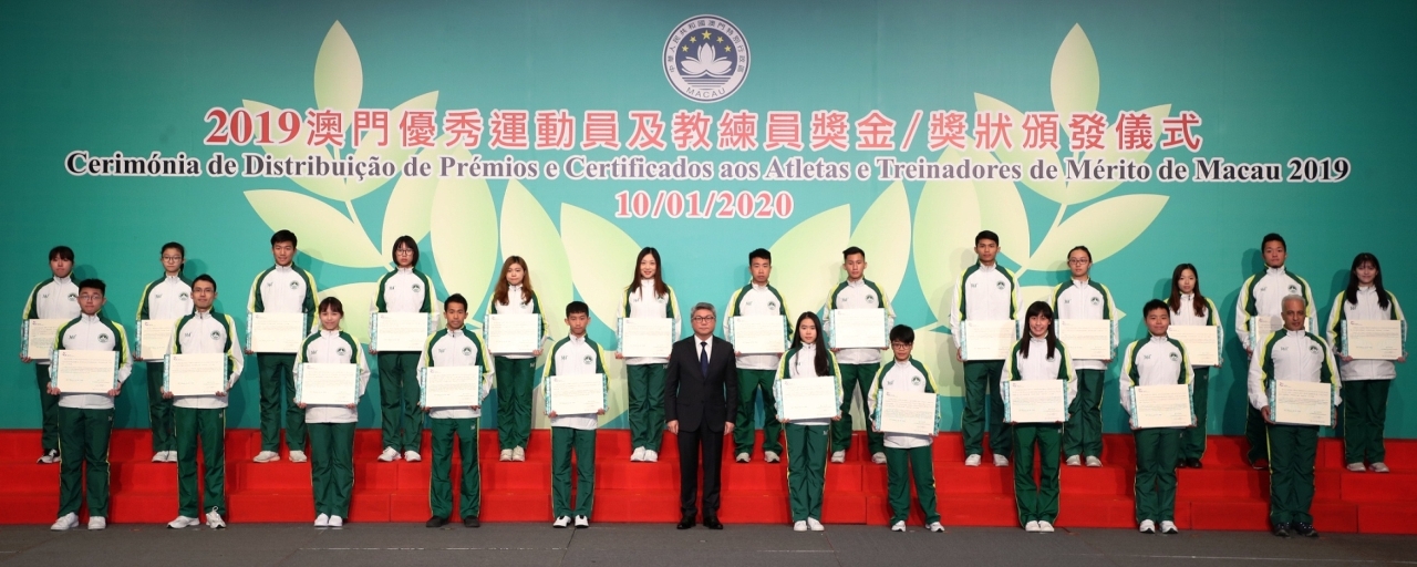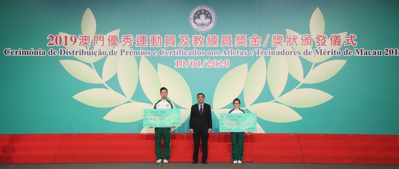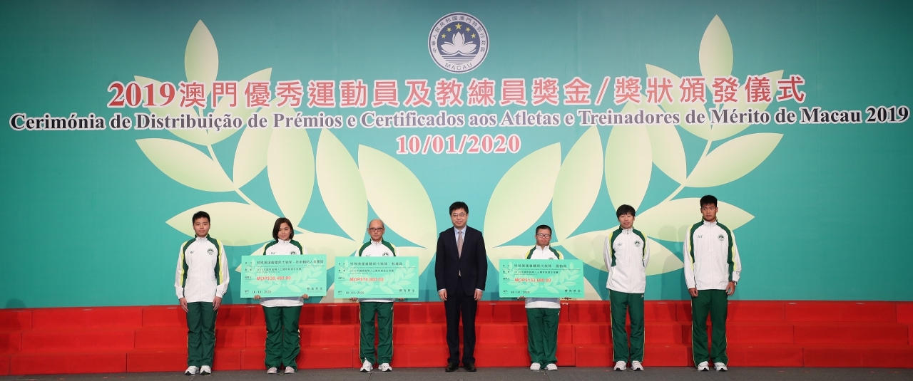 为表彰在2019年度参加体育比赛中获得优秀成绩的运动员及教练员,『2019澳门优秀运动员及教练员奖金/奖状颁发仪式』今日(10日)晚上七时半于澳门旅游塔会展娱乐中心4楼大礼堂举行,行政长官代表、社会文化司司长欧阳瑜等出席了颁发仪式,并祝贺获奖的队伍。