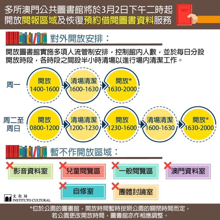 文化局辖下多所澳门公共图书馆局部开放