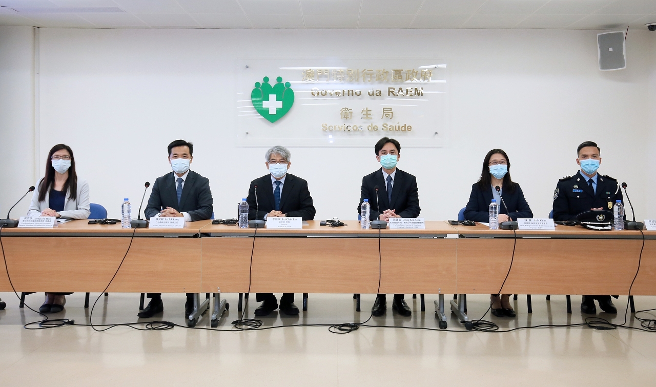 新型冠状病毒感染应变协调中心(下称应变协调中心)于今(12)日举行例行记者会,卫生局李展润局长、仁伯爵综合医院罗奕龙医务主任、教育暨青年局教育研究暨资源厅黄健武厅长、旅游局执照及监察厅陈露厅长、治安警察局行动及通讯处马超雄处长、疾病预防控制中心传染病梁亦好协调员共同会见传媒。